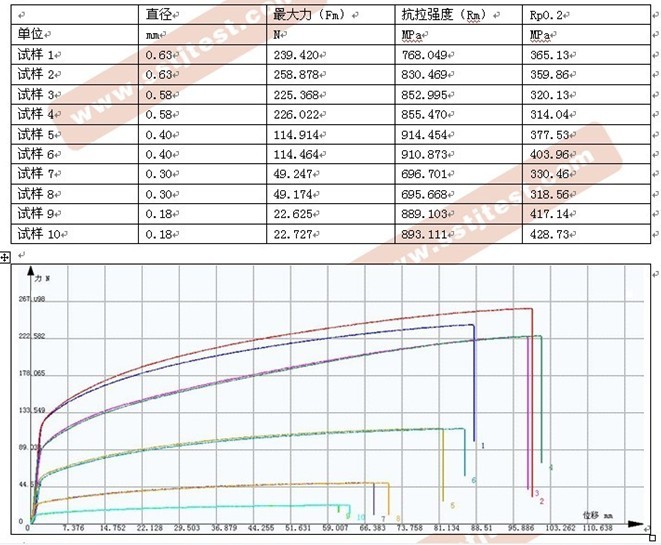 不銹鋼燒結網鋼絲拉伸試驗報告: